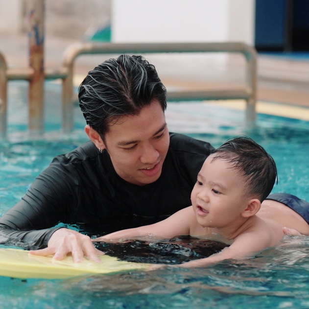We never force a child into the water. Instead, we help them feel comfortable step by step, whether that means sitting on the edge, playing gentle water games, or starting with a parent nearby.